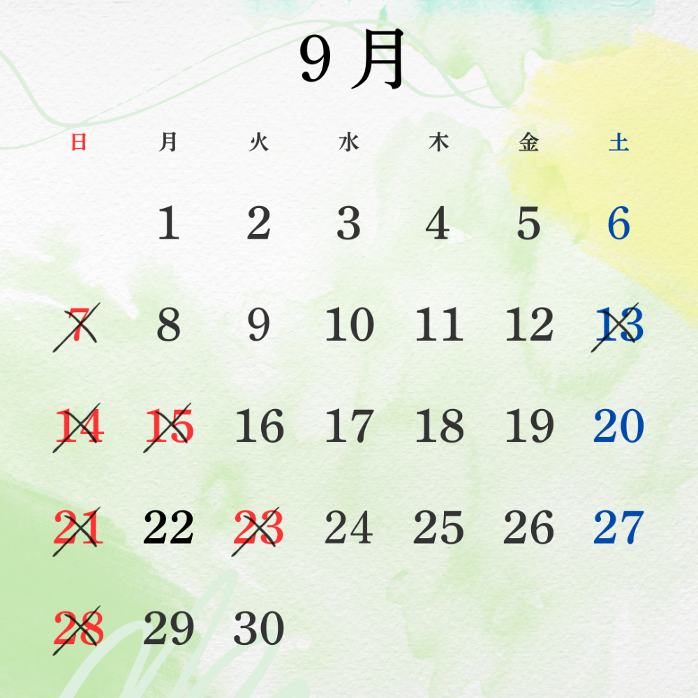 9月の休業日