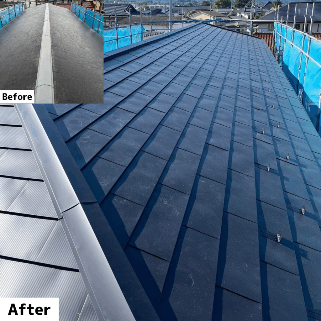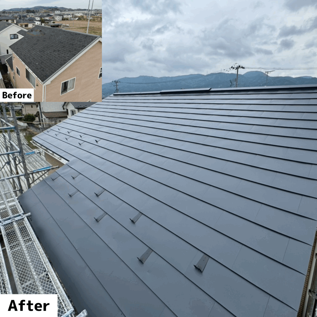 - -アスファルトシングル屋根 ⇒ ガルバリウム合板屋根-